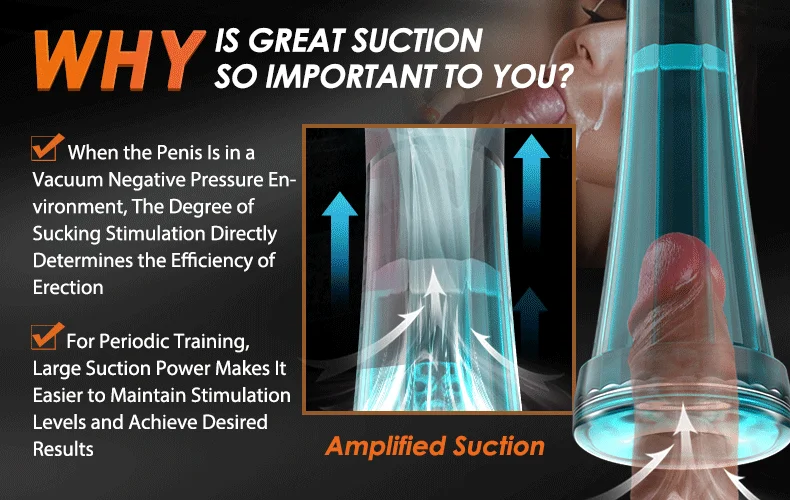 1. When the penis is in a vacuum negative pressure environment, the degree of suction stimulation directly affects erectile efficiency. When you experience oral sex and deep throat, you receive greater stimulation, making it easier to achieve an erection.